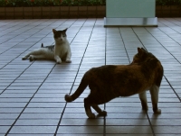 そんな心配を余所に、彼らは冷たいタイルの上でじっと人の行き来を眺めている・・・