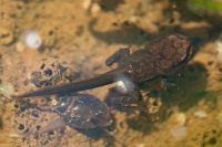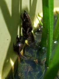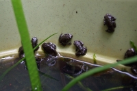 さて、毎年のように生き物の生態を観察していると、今回のうちの庭でのヒキガエルの繁殖が、時期外れなのが分かります。本来なら3月末に卵が産み出され、4月中に成長し、5月の今頃は手足が生えて陸に上がり始めるのが普通。つまり一ヶ月ほど遅いのです。