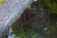 アパートの庭の人工池で卵から孵ったおたまじゃくし。