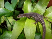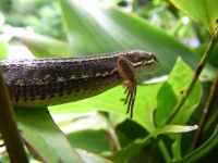 カナヘビはその後 涼しい木陰の葉っぱの上に放してやりました・・・