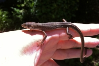 今日の千葉湾岸部の気温は約32度。うちの庭でも、暑さの影響を確認できることがありました。カナヘビが葉っぱの上でぐったりしてました。そっと手の上に乗せても、何だか逃げる元気が無いみたい。iPhoneで写真を撮っている間もとても大人しく、時々目を閉じて辛そうなご様子でした。おかげで、普段見られない至近距離でよーく観察させて貰いました。