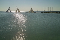 中央の写真の水平線上には遠くに海ほたるらしきシルエットが微かに見えます。