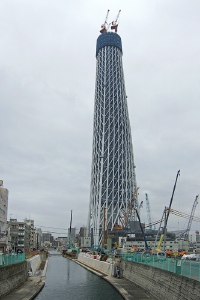 押上界隈には比較できるほど高層の建築物がなく、東京スカイツリーが完成した暁には、周囲の再開発が活発化して街は激変するかも知れません。本来ならこれほど巨大な建物が近所に建ったら迷惑に感じそうですが、観光の超目玉になることに間違いなく、歓迎されているみたいです。押上の名が有名になり、地元にとっては願ったり叶ったりでしょう。