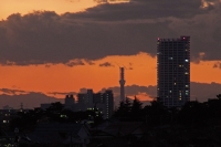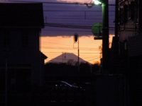 そこから見た街の建物の挾間からは、ちょうど富士山の山頂付近が少し見え、NTTの電波塔のシルエットがそこに映える。しばらく時間を忘れてそのあかね空を眺めておりました・・・