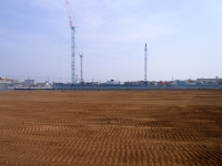 そんな風景を最近 身の回りで見かける事があり、思わず懐かしい気分に浸っております。それが千葉県のJR津田沼駅前の風景。ここはなだらかな丘陵地で、これまで一面畑でした。開発の話がこれまでに何度もあった様ですが、敷地内に古代遺跡が発見された事もあって、一旦開発が中止され、長い間発掘調査が行われていた場所です。その作業もやっと終わったらしく、やっと重機が入って一気に土地をならしてしまいました。 JR駅前の市街地内に、これだけの空間が残っているのはもう珍しいらしく、ゼネコン&デベロッパーが昔から目を付けていた場所。大きなマンションと住宅地、それにちょっとした公共の広場なんかが作られるらしいです。空き地内にはもちろん入れません。敷地の真ん中を通れる様に作られたフェンスで囲われた道路があるのみです。子供たちが入って遊べる様なご時世でももう有りません。