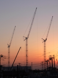 ご覧の様な建設現場のクレーンのシルエットと、これまた