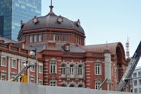 JR東京駅舎は、1914年に建築家 辰野金吾氏の手によって設計された赤煉瓦を使ったゴシック様式系の建築物。資料によると、第二次世界大戦中にアメリカ軍の焼夷弾によって駅舎の構造の一部と内装が消失。その後修復作業によって復活した経緯があるそうな。その時に3階建だったものを2階建に変更し現在に至っていると言う。その駅舎を、直下型の地震にも耐えうる免震工法で改築しなおし、その際にデザインを創業当時のものに戻すプロジェクトが現在進行中です。