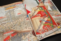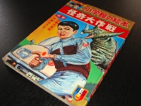 設定資料集に関しては昭和時代であれば、プラモデルの箱絵として誰もが見た事があるはずの挿絵画家 小松崎茂氏の原画を見ることが出来たのは大変な感動でした。また多くの特撮映画の中に出て来る「毎朝新聞」の実物?にも感心。記事の内容も全部ちゃんと書いて有り 手の込んだ造りには脱帽(映画の中では細かい字なんて見えていないのに・・・)館内は通常の美術品展示と同じ様に撮影禁止でしたので記録は一切撮れず残念でした。