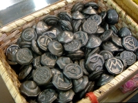 最近ではデパートなどのフロアの一画に「駄菓子」コーナーが設けられることがあります。写真は先日立ち寄った駄菓子コーナーです。その中から・・・驚くのは水鉄砲は30年前に見かけたものとほぼ同じものであること。恐らくこれと言ったモデルチェンジも無くずっと作られているからでしょう。蝋石は少し細めのモノが売っていました。ベーゴマは薄いのと厚いタイプがありましたが、ヒモがセットになっていません。いくつか買いましたが、店番の若い女の子はひもについて一言もサポートしてくれなかった・・・コレが何だか分かっていないのかもしれません。まぁ仕方ないかな・・・