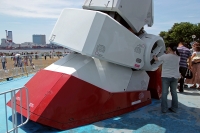 何と言っても 設定通りの全高18メートルの高さは圧巻です。モビルスーツが実在したらこういうアングルで見上げる事になるのだと肌で体感できました。ゲームソフトで歩兵がモビルスーツと戦う局地戦の設定がありますが、その世界観をしっかり感じることが出来ます。今まで 部分的なパーツレベルで実物大を唄ったアトラクションはありますけれど、目の前にそびえ立っている事の意味は大きいのあります!時々可動部分を効果音とともに動かすアトラクションがあるのですが、ちょっと物足りなさが漂います。贅沢をいえば一歩でも歩いてくれないかなー(願)