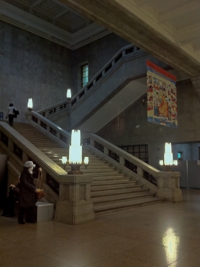 この夏に世間の注目を集めていた「特撮博物館」の展示を東京都現代美術館に見に行って来ました。昭和から平成にかけての日本特撮映画におけるメカや小道具・設定資料集を作品ごとに集めて展示したものとしては過去最大かと思います。「新世紀エヴァンゲリオン」監督の庵野秀明氏が特撮展示の語りべキャラとして随所に登場します。各模型作品に氏の紹介コメント札を付けたとてもオタクに親和性の高い配慮がなされていました。それにプラス 音声ガイドのサービスは一般の美術作品と同様に端末の貸し出しもあり。レンタル料500円也。その解説もファン心理のツボをよく心得たナレーションになっていてとても良かったです。