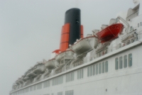 目の前のQE2はシャープなボディラインが大変美しかった。船体の下半分がダークな配色の客船というのは意外と少なく、現在は全体が白っぽいデザインが多い様なのです。