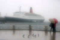 小一時間様子をみながら、みぞれと風が少し治まったところで空が少し明るくなってきた・・・そこで何枚か撮ってきました。キヨハラソフトで雰囲気を狙ったカットも撮ったのですが、結果は今ひとつといった所です・・・その日の灰色の空と黒っぽい船体のQE2。そのモノトーンに近い雰囲気が印象的でした。