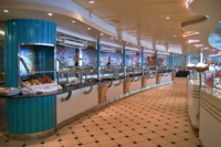 乗客定員が3114名なのですが、その半数以上は乗組員スタッフなのですね。お客よりも多いのです。それは最高のエンターティンメントサービスを提供する為のものだから。豪華客船の内部は、それこそ動くホテルそのもので、広大な空間があり、あらゆる施設と娯楽サービス・アトラクションが用意されています。